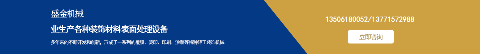 盛金機械專業生產各種裝飾材料表面處理設備 集多年來的不斷開發(fā)和創新,形成了一系列的覆膜、燙印、印刷、涂裝等特種輕工裝飾機械。并敢于和善于開發(fā)用戶急需的特殊要求機械設備。